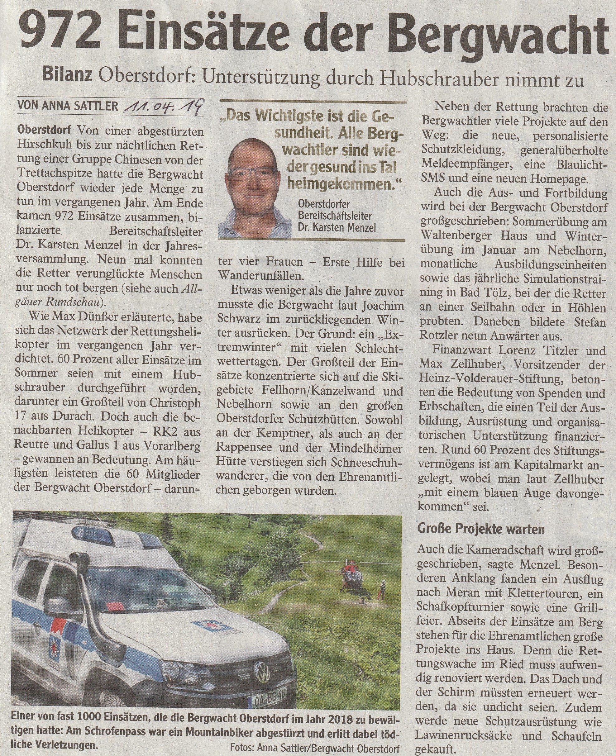 Presseartikel 11.04.2019 – 972 Einsätze der Bergwacht Oberstdorf in 2018