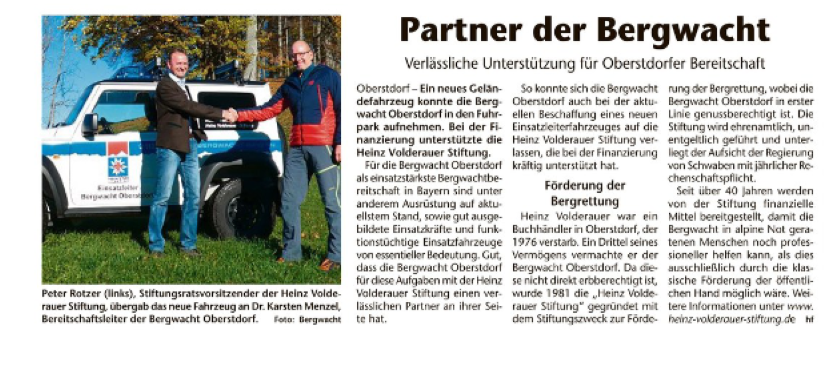 Heinz-Volderauer-Stiftung hilft der Bergwacht – Oberstdorf Magazin – 25.10.2013