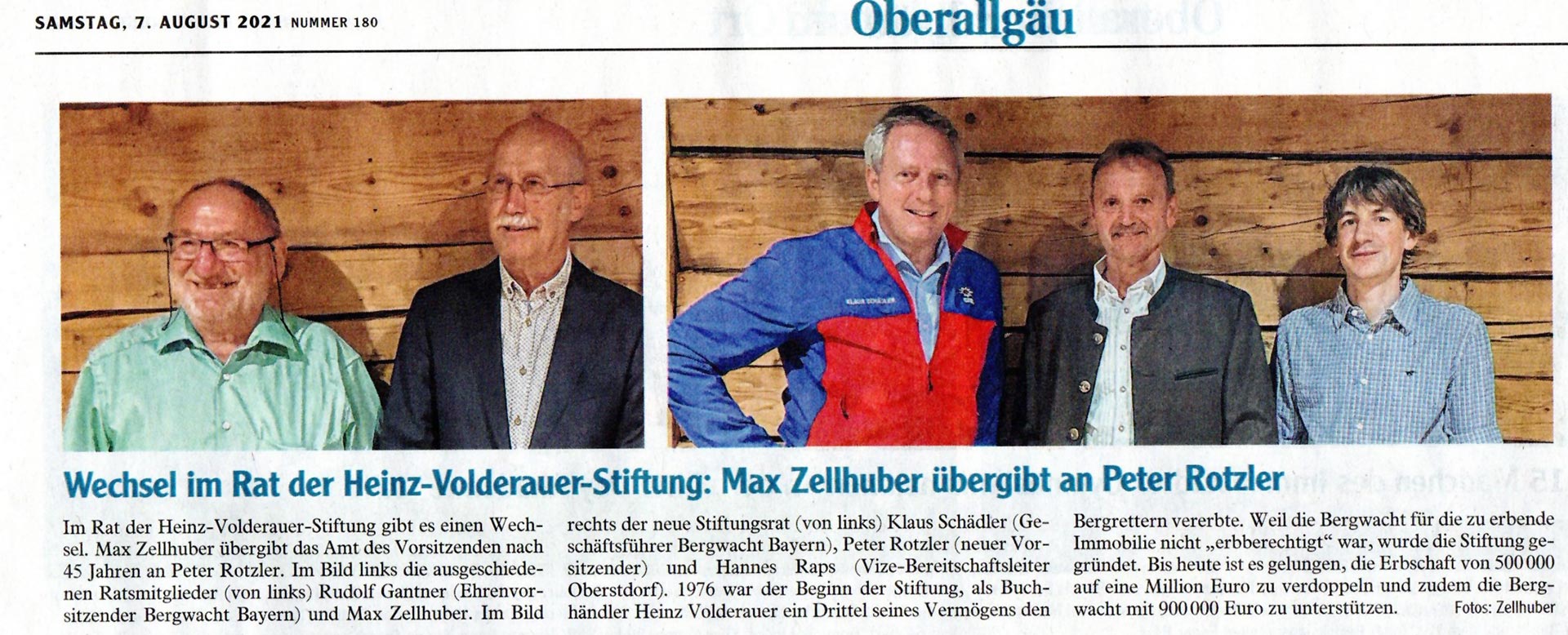 Presseartikel über Wechsel im Rat der Heinz-Volderauer-Stiftung vom 07/08/2021